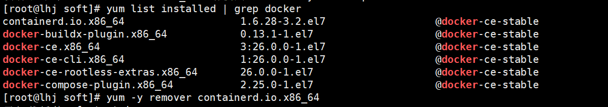 以前可能安装过docker,有版本的冲突,查找安装的docker包,并删除:查找命令 yum list installed | grep docker